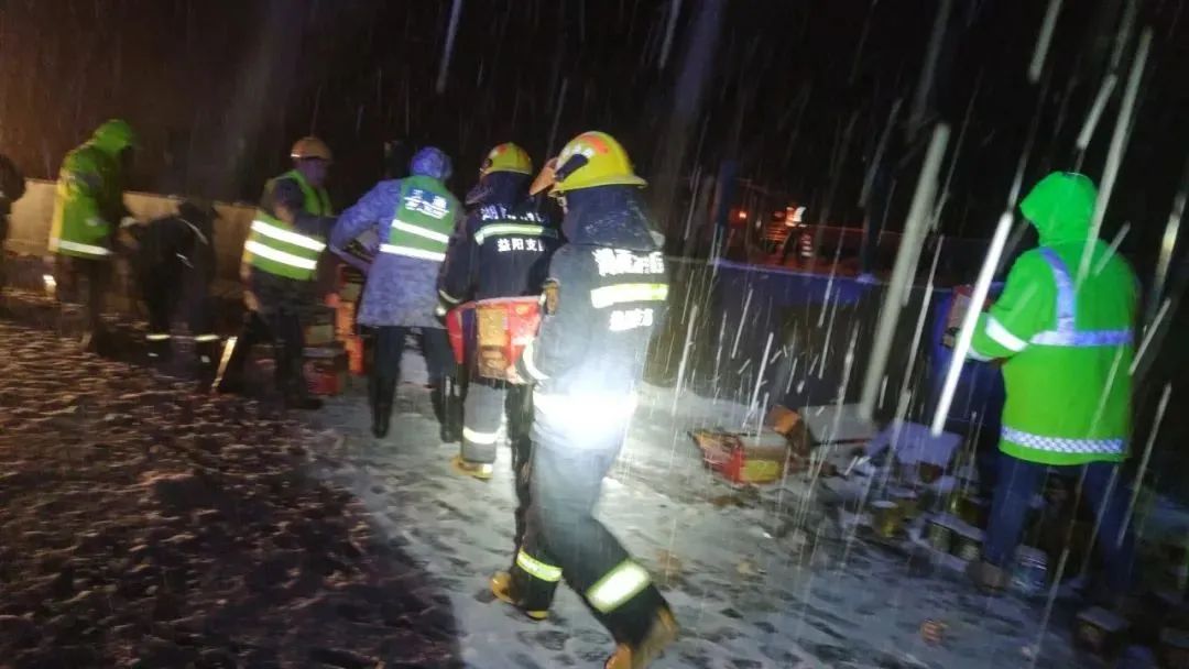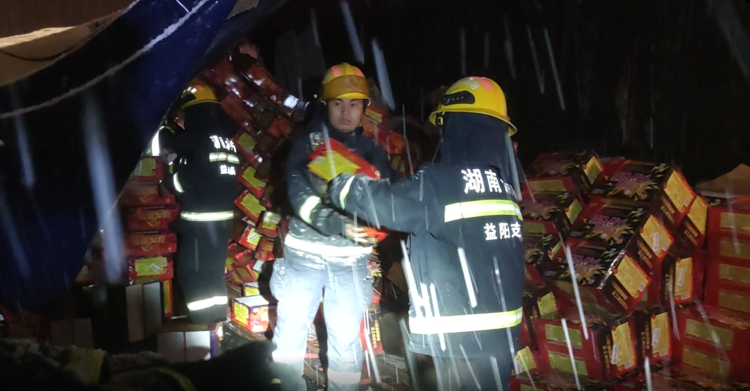 近日,湖南長常北線高速東往西方向33公里處,一裝載煙花車輛側翻,情況十分危急。