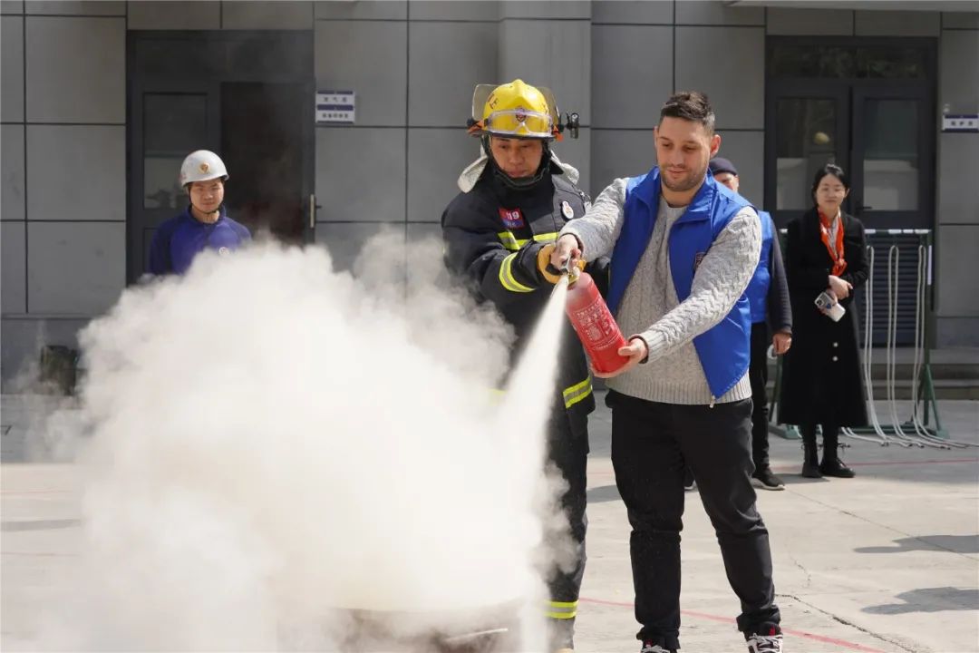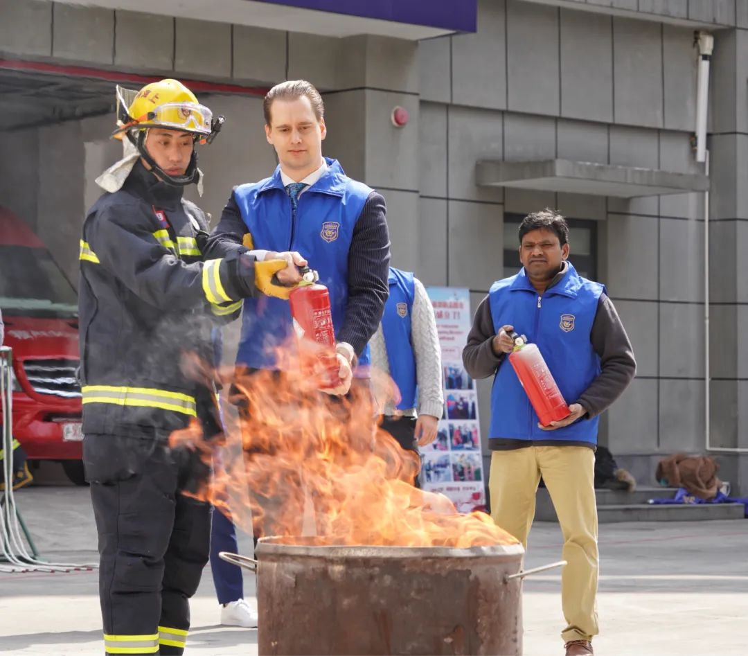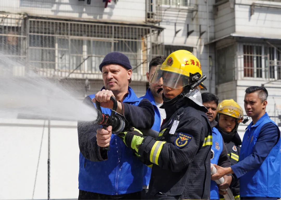 這些外籍志愿者在消防隊里接受了消防技能培訓(xùn),進(jìn)行消防救援演練。著戰(zhàn)斗服、背空呼器、舉水槍噴射……“歪果仁”志愿者們“零距離”學(xué)習(xí)防災(zāi)減災(zāi)知識與滅火自救技能。