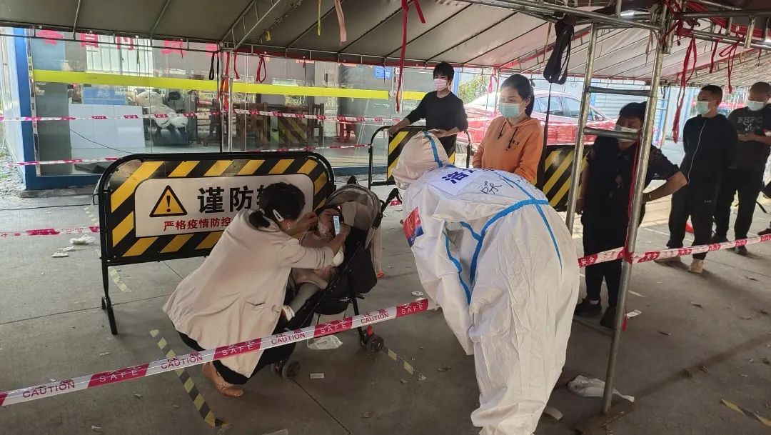 “天氣冷,小朋友到這邊來先做。”3月17日晚間,南昌市氣溫驟降、刮著7-8級大風(fēng)。青山湖區(qū)消防救援大隊消防員胡九洲穿著“大白”,在湖坊鎮(zhèn)宏利社區(qū)核酸檢測點連續(xù)奮戰(zhàn)數(shù)小時,耐心地維護(hù)現(xiàn)場秩序。