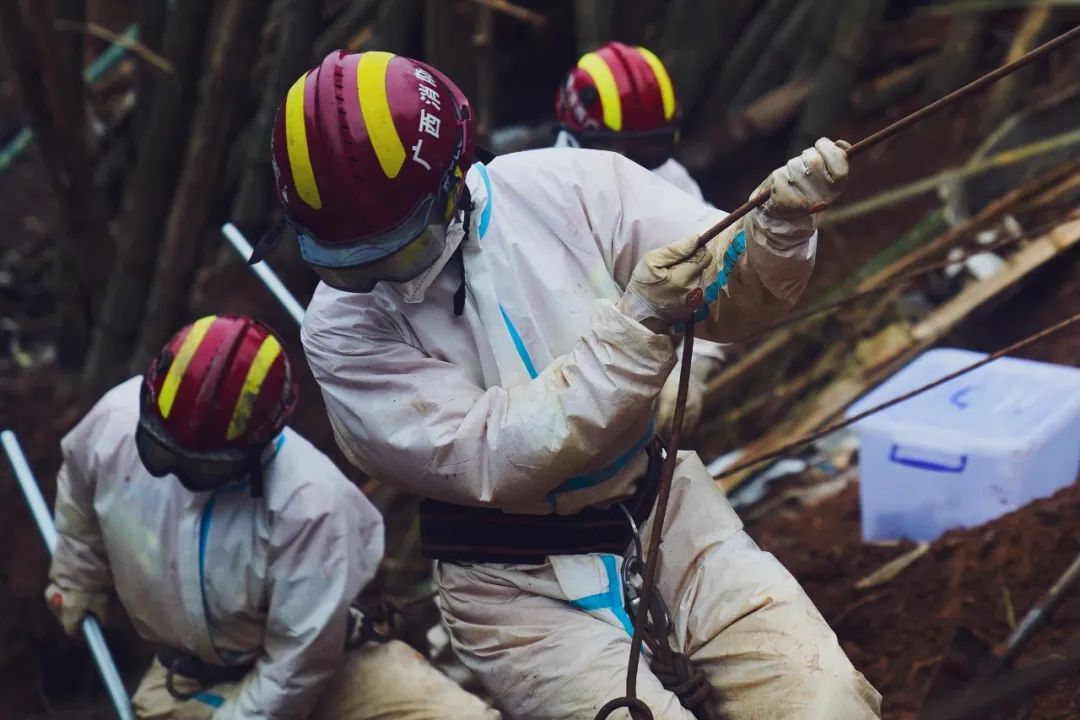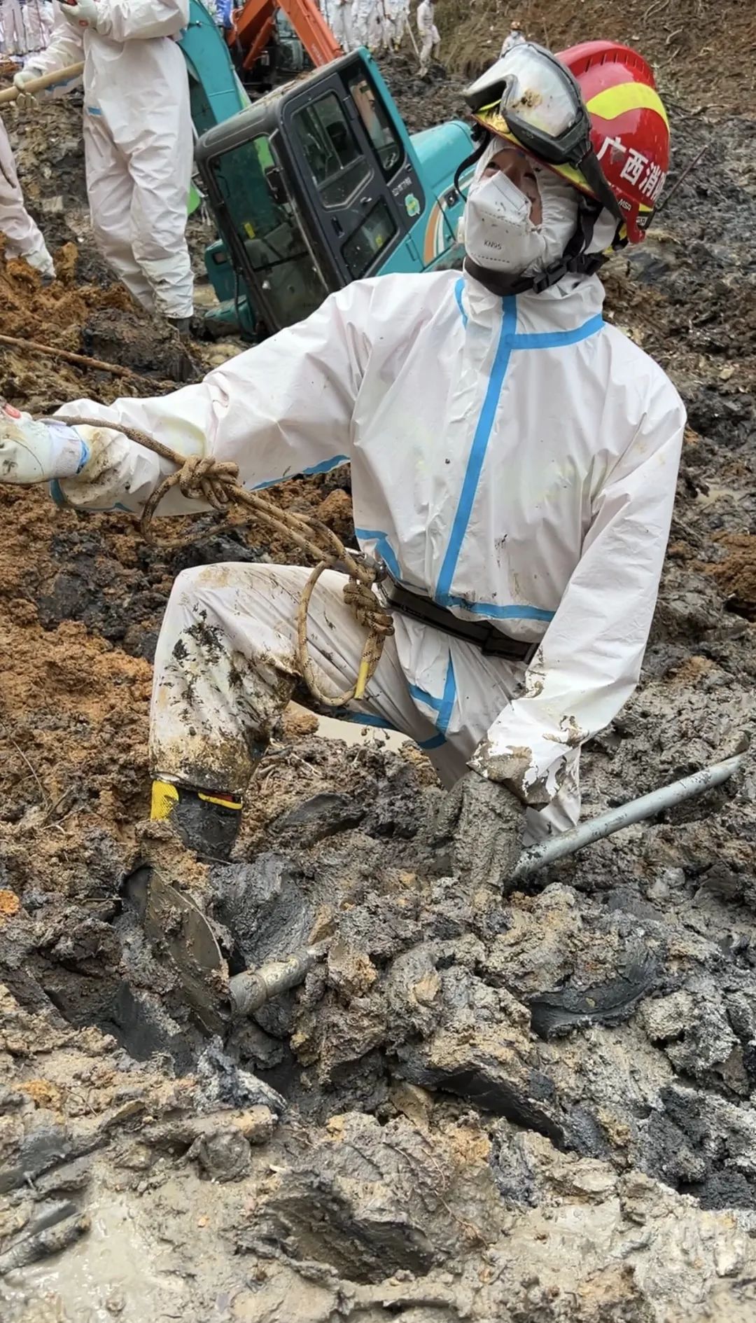 隊長發(fā)現(xiàn)狀況后,立馬拽住我的安全繩,一發(fā)力就把我提了上來?;仡^看向泥潭,鞋子留在了里面。隊長立刻向現(xiàn)場搜救人員發(fā)出提示,雨后泥土松軟,務必注意腳下,做好安全防護。