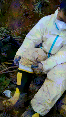 防疫工作不能疏忽,進山前手消毒,戴防護帽,戴口罩,穿防護服,戴手套,戴面罩,套鞋套……包住每一寸裸露的肌膚。防護服中間不能脫,不方便上廁所,隊長提前給我們準備了紙尿褲。人生第一次穿上成人紙尿褲,我有點害羞。