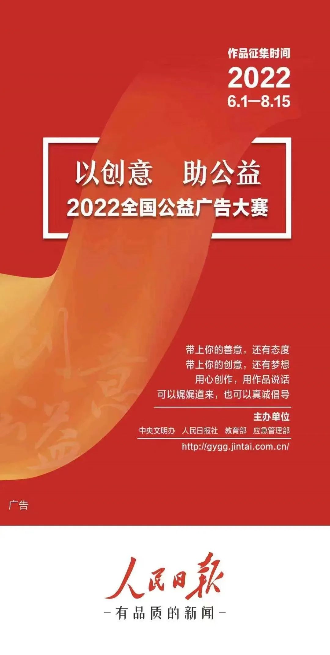 【人民日?qǐng)?bào)】2022全國(guó)公益廣告大賽正式啟動(dòng)