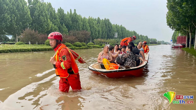 消防救援人員,是受災(zāi)現(xiàn)場(chǎng)出生入死的“逆行者”。李勝利從一名普通戰(zhàn)士,成長(zhǎng)到指揮長(zhǎng),永遠(yuǎn)是隊(duì)伍中最嘹亮的沖鋒號(hào)。2021年7月,河南省遭遇極端強(qiáng)降雨,多地受災(zāi)嚴(yán)重。聽(tīng)到援豫集結(jié)的命令后,李勝利帶領(lǐng)“勝利攻堅(jiān)隊(duì)”連夜前往河南省鄭州市中牟縣白沙鎮(zhèn)參與救援。在一次轉(zhuǎn)運(yùn)群眾的救援任務(wù)中,50歲的李勝利,一次次跳進(jìn)水里,一遍遍拉起沖鋒舟,將群眾轉(zhuǎn)運(yùn)至幾百米外的安全地帶。休整時(shí),隊(duì)員們發(fā)現(xiàn)李勝利的腿腫了,被水泡透的腳脫了一層皮?!耙笙绬T做到,自己必須先做到!”在增援河南的十多天里,李勝利和隊(duì)員們輾轉(zhuǎn)多地營(yíng)救疏散被困群眾1200余名,防疫消殺15萬(wàn)余平方米。