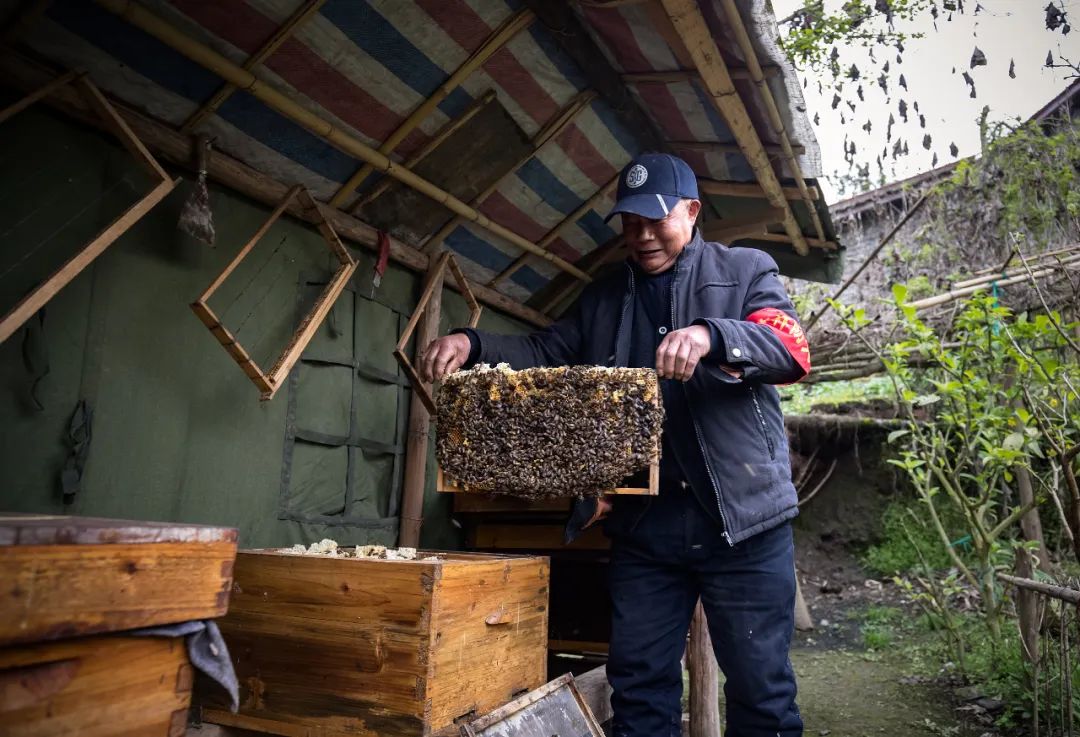 四川省德陽市應(yīng)急管理局實(shí)施精準(zhǔn)扶貧,什邡市鎣華鎮(zhèn)高橋村村民陶邦生因老伴生病致貧,他靠養(yǎng)蜂和當(dāng)護(hù)林員有了收入,日子一天天好起來