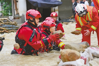 [人民日?qǐng)?bào)]洪水中有力的大手
