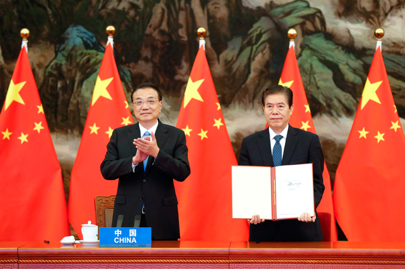 李克強(qiáng)說:“這不僅僅是東亞區(qū)域性合作極具標(biāo)志性意義的成果,更是多邊主義和自由貿(mào)易的勝利。”