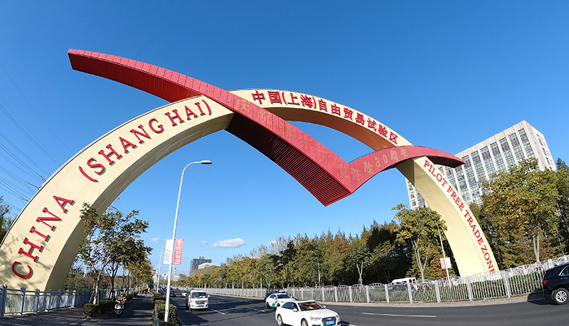 這是2020年11月11日拍攝的中國(上海)自由貿(mào)易試驗區(qū)標志門。新華社記者 方喆 攝