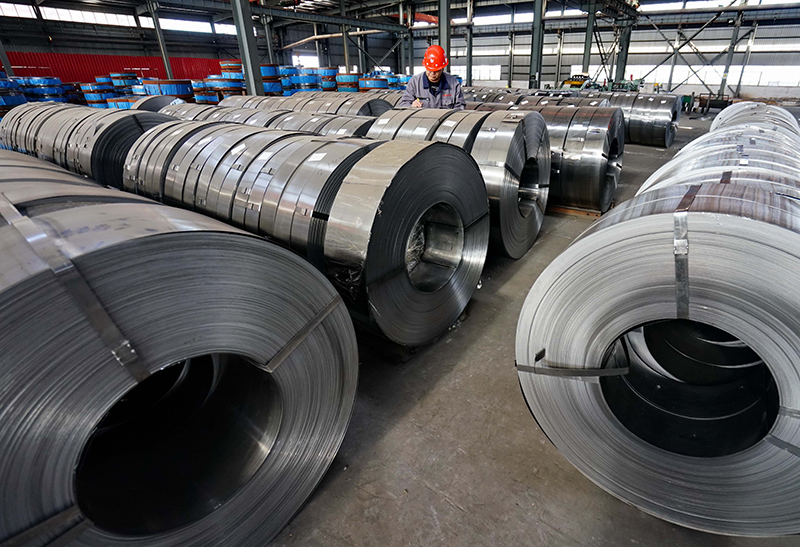 工人在河北省唐山市豐潤區(qū)新軍屯鎮(zhèn)一家特種帶鋼生產(chǎn)企業(yè)的車間工作(2019年5月5日攝)。新華社記者 楊世堯 攝