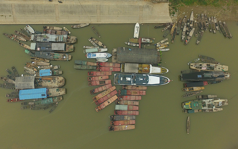 在湖南常德漢壽縣蔣家嘴鎮(zhèn),待回收的鐵漁船??吭诙赐ズ叄?019年12月17日攝,無人機照片)。2020年1月1日零時起,長江流域332個自然保護區(qū)和水產(chǎn)種質(zhì)資源保護區(qū)全面禁止生產(chǎn)性捕撈。新華社記者 薛宇舸 攝