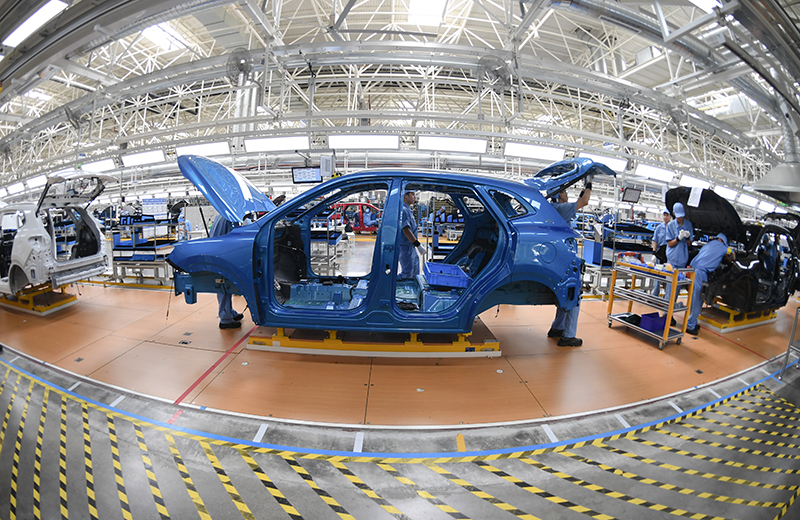 在上汽集團乘用車寧德基地總裝車間,工人在裝配生產(chǎn)線作業(yè)(2020年9月15日攝)。新華社記者 宋為偉 攝