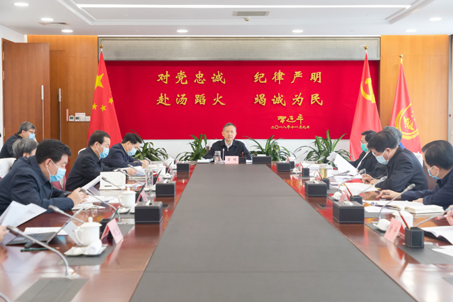 2月20日和24日,應(yīng)急管理部黨組書(shū)記黃明主持召開(kāi)部黨組會(huì)議,傳達(dá)學(xué)習(xí)習(xí)近平總書(shū)記在主持中央政治局常委會(huì)會(huì)議時(shí)和在統(tǒng)籌推進(jìn)新冠肺炎疫情防控和經(jīng)濟(jì)社會(huì)發(fā)展工作部署會(huì)議上的重要講話(huà)精神,研究部署進(jìn)一步做好疫情防控和保障經(jīng)濟(jì)社會(huì)發(fā)展工作。黨組同志逐一發(fā)言,交流學(xué)習(xí)體會(huì),提出工作打算。黃明強(qiáng)調(diào),要深入學(xué)習(xí)貫徹習(xí)近平總書(shū)記重要講話(huà)精神,更加自覺(jué)做到“兩個(gè)維護(hù)”,增強(qiáng)必勝之心、責(zé)任之心、仁愛(ài)之心、謹(jǐn)慎之心,在疫情防控和保障經(jīng)濟(jì)社會(huì)發(fā)展的大戰(zhàn)大考中充分發(fā)揮職能作用,狠抓工作落實(shí),勇于擔(dān)當(dāng)作為,讓黨旗在疫情防控和安全風(fēng)險(xiǎn)防范的第一線高高飄揚(yáng)。