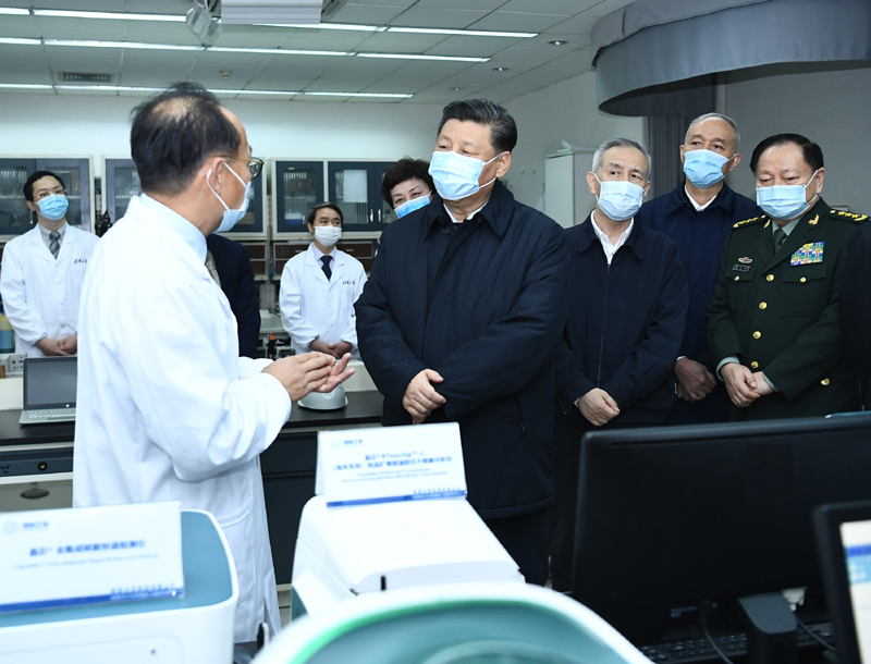 新華社北京3月2日電 中共中央總書記、國家主席、中央軍委主席習近平2日在北京考察新冠肺炎防控科研攻關工作,代表黨中央向奮斗在疫情防控科研攻關一線的廣大科技工作者表示衷心的感謝和誠摯的問候。他強調(diào),人類同疾病較量最有力的武器就是科學技術(shù),人類戰(zhàn)勝大災大疫離不開科學發(fā)展和技術(shù)創(chuàng)新。要把新冠肺炎防控科研攻關作為一項重大而緊迫任務,綜合多學科力量,統(tǒng)一領導、協(xié)同推進,在堅持科學性、確保安全性的基礎上加快研發(fā)進度,盡快攻克疫情防控的重點難點問題,為打贏疫情防控人民戰(zhàn)爭、總體戰(zhàn)、阻擊戰(zhàn)提供強大科技支撐。