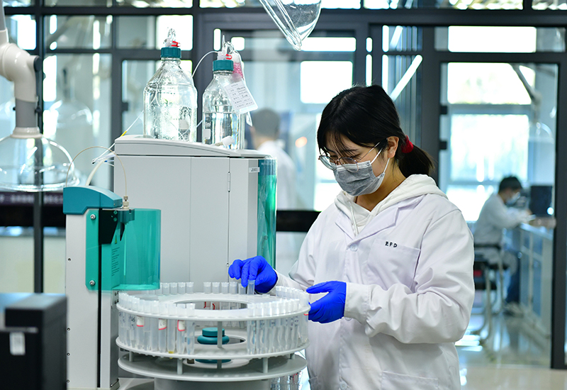 研發(fā)分析人員在南開大學(xué)·滄州渤海新區(qū)綠色化工研究院分析測(cè)試中心工作(10月12日攝)。新華社記者 楊世堯 攝