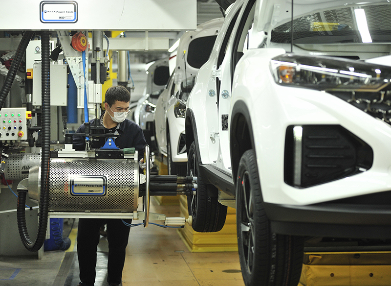 工人在北京現(xiàn)代滄州工廠車身車間工作(3月3日攝)。新華社記者 楊世堯 攝