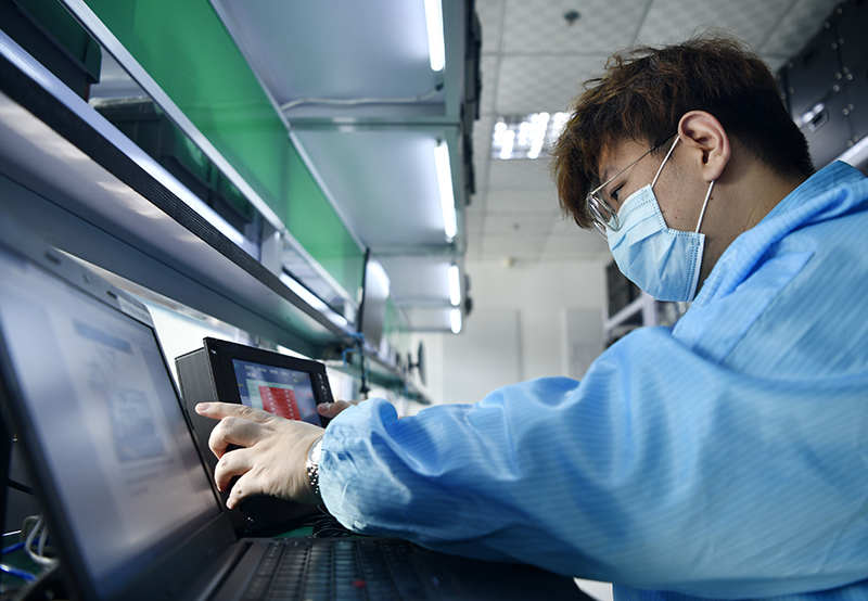 在京津中關(guān)村科技城,天津新松智能科技有限公司的員工在調(diào)試設(shè)備(2020年12月28日攝)。新華社記者 李然 攝