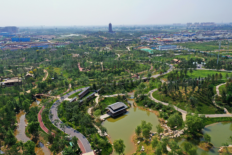 這是雄安新區(qū)悅?cè)莨珗@北苑內(nèi)的景色(9月1日攝,無人機(jī)照片)。新華社記者 牟宇 攝