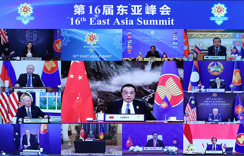 據(jù)中央廣播電視總臺(tái)中國(guó)之聲《新聞和報(bào)紙摘要》報(bào)道,國(guó)務(wù)院總理李克強(qiáng)27日晚在人民大會(huì)堂以視頻形式出席第16屆東亞峰會(huì)。東盟國(guó)家領(lǐng)導(dǎo)人以及俄羅斯總統(tǒng)普京、韓國(guó)總統(tǒng)文在寅、美國(guó)總統(tǒng)拜登、日本首相岸田文雄、印度總理莫迪、澳大利亞總理莫里森、新西蘭總理阿德恩等與會(huì)。