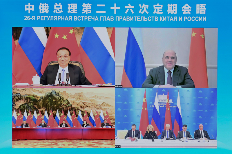 11月30日下午,國(guó)務(wù)院總理李克強(qiáng)在北京人民大會(huì)堂與俄羅斯總理米舒斯京共同主持中俄總理第二十六次定期會(huì)晤。會(huì)晤以視頻方式舉行。