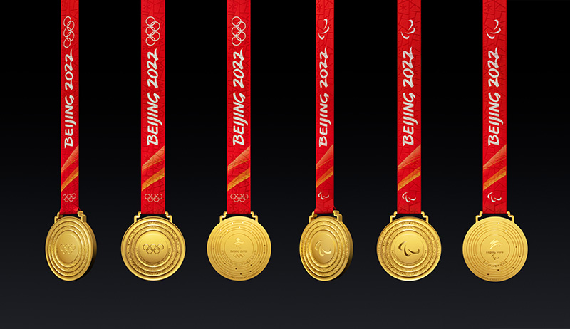 2021年10月26日,北京冬奧會開幕倒計時百天之際,冬奧會和冬殘奧會獎牌問世。宛如同心圓玉璧的獎牌上,銘刻冰雪紋和祥云紋。古老東方文明與奧林匹克精神,于方寸之間交相輝映。