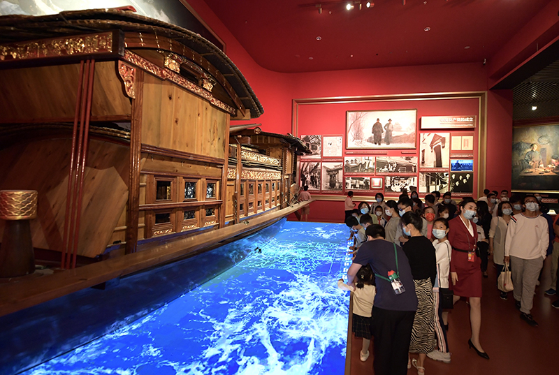 觀眾在中國共產(chǎn)黨歷史展覽館參觀(2021年10月1日攝)。新華社記者 李賀 攝