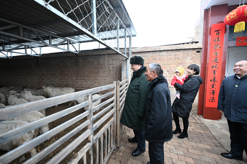 1月26日至27日,中共中央總書記、國家主席、中央軍委主席習近平來到山西,看望慰問基層干部群眾。這是26日下午,習近平在臨汾市汾西縣僧念鎮(zhèn)段村蔡文明家察看羊圈。新華社記者 李學仁 攝