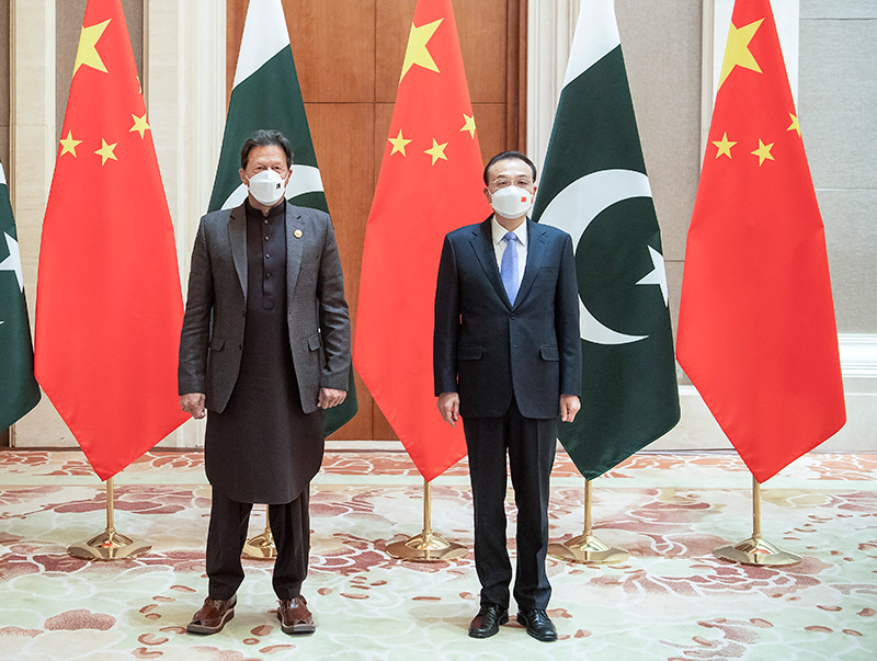 2月5日下午,國務(wù)院總理李克強在北京釣魚臺國賓館會見來華出席北京冬奧會開幕式的巴基斯坦總理伊姆蘭·汗。新華社記者 李濤 攝