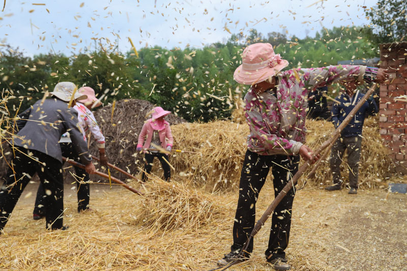 甘肅省定西市渭源縣元古堆村村民在脫麥子(2020年8月22日攝)。新華社記者 馬希平 攝