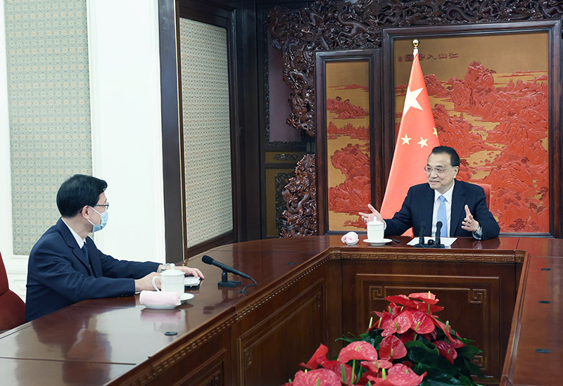 李克強(qiáng)首先祝賀李家超當(dāng)選并獲任命,表示中央政府將一如既往全面準(zhǔn)確、堅(jiān)定不移貫徹“一國(guó)兩制”、“港人治港”、高度自治的方針,落實(shí)中央對(duì)特別行政區(qū)全面管治權(quán),堅(jiān)定落實(shí)“愛(ài)國(guó)者治港”,全力支持行政長(zhǎng)官和特別行政區(qū)政府依法施政、發(fā)展經(jīng)濟(jì)、改善民生,結(jié)合國(guó)家所需、發(fā)揮香港所長(zhǎng),全力推動(dòng)香港更好融入國(guó)家發(fā)展大局,保持香港長(zhǎng)期繁榮穩(wěn)定。