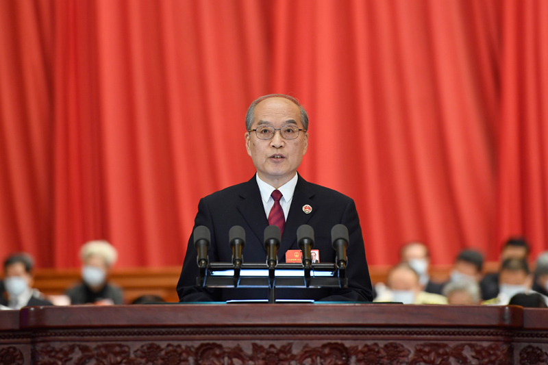 5月25日,十三屆全國人大三次會議在北京人民大會堂舉行第二次全體會議。最高人民法院院長周強代表最高人民法院作工作報告。新華社記者 岳月偉 攝