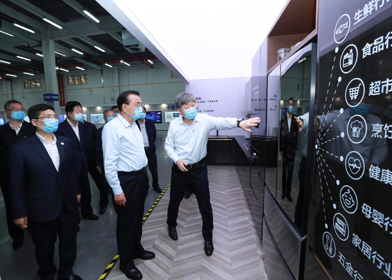 在海爾集團(tuán),企業(yè)負(fù)責(zé)人匯報了開展雙創(chuàng)和發(fā)展工業(yè)互聯(lián)網(wǎng)的情況。李克強(qiáng)觀看企業(yè)研發(fā)推出的多系列智能產(chǎn)品,對他們實行人單合一模式、搭建每個員工成為創(chuàng)客的平臺、匯聚海內(nèi)外各方智慧開展創(chuàng)新表示贊許,勉勵他們海納百川,不斷創(chuàng)新,走在時代前列。他要求有關(guān)部門在總結(jié)企業(yè)好做法的基礎(chǔ)上,拿出探索大企業(yè)協(xié)同中小微企業(yè)發(fā)展、各行業(yè)融通發(fā)展的改革舉措,促進(jìn)更多新業(yè)態(tài)發(fā)展,帶動更多就業(yè)。
