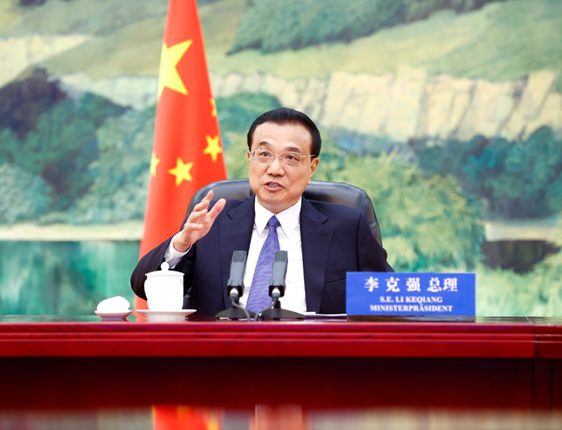 國務(wù)院總理李克強6月11日下午在人民大會堂同德國總理默克爾舉行視頻會晤。