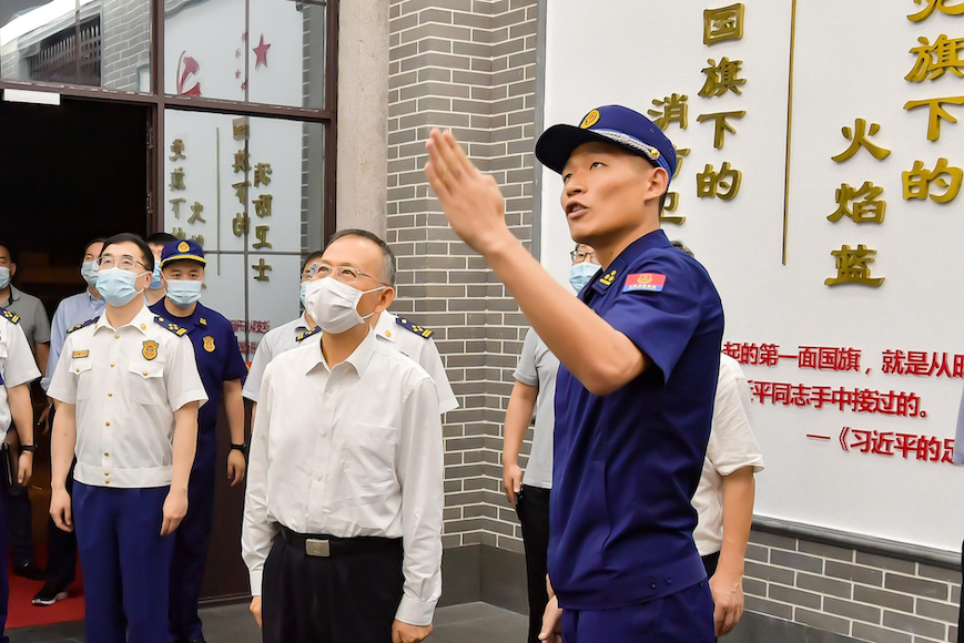 黃明強調(diào),國家綜合性消防救援隊伍作為習(xí)近平總書記親切關(guān)懷、親手締造、親自授旗致訓(xùn)詞的新型人民隊伍,要進一步增強“四個意識”、堅定“四個自信”、做到“兩個維護”,高標(biāo)準(zhǔn)高質(zhì)量開展黨史學(xué)習(xí)教育,從黨的百年歷史中汲取營養(yǎng)、滋養(yǎng)初心,貫徹新發(fā)展理念,扎實履行好防范化解重大安全風(fēng)險、應(yīng)對處置各類災(zāi)害事故的職責(zé)使命。要積極開展“我為群眾辦實事”實踐活動,切實把與人民群眾切身利益相關(guān)的好事辦實、實事辦好,讓人民群眾有更多的獲得感、幸福感、安全感。