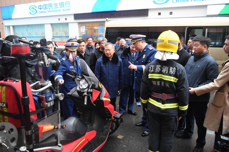 在江北新區(qū)弘陽廣場,黃明書記聽取了“1+N”模式建筑消防設施操作專業(yè)隊介紹,詢問了解專業(yè)隊隊員日常工作開展及轄區(qū)高層建筑、大型綜合體基本情況,充分肯定專業(yè)隊的做法,要求積極運用信息化、大數(shù)據(jù)手段,實現(xiàn)對單位消防設施的動態(tài)監(jiān)測、實時掌控,縮短滅火救援響應時間,最大限度保護人民群眾生命財產(chǎn)安全。在浦口區(qū)江畔明珠和鼓樓區(qū)陽光廣場小區(qū),黃明書記邊走邊看邊問,沿路查看消防車通道,了解小區(qū)規(guī)劃環(huán)境、建筑消防設施配備、私家車保有量及配套車位建設情況,觀摩微型消防站裝備展示和拉動演練。黃明書記指出,由于規(guī)劃先天不足,多數(shù)老舊小區(qū)普遍存在住戶與停車位比例不匹配的問題,堵塞、占用消防車通道的現(xiàn)象嚴重,希望各級政府及部門出實招、用實勁、求實效,著力解決人民群眾反映強烈的突出問題。